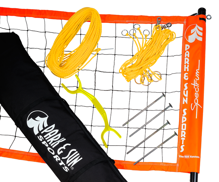 De Spectrum 2000 beachvolleybalset van Park & Sun is een draagbaar beachvolleybalnetsysteem bestaande uit: