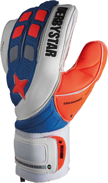 De Derbystar Attack Ar Duo is een duurzaam allround doelman handschoen. Deze handschoen heeft een flat cut. De Derbystar Attack Ar Duo heeft het schuim een 3 mm DURA hechting in het oranje en de achterkant is van EVA schuim. Deze handschoen heeft een goede schokdemping. De Derbystar Attack Ar Duo heeft een optimale pasvorm. Deze handschoen heeft als sluiting een elastische bandage met brede klittenbandsluiting gemaakt van EVA schuim. Deze handschoen heeft uitstekende hechting eigenschappen en goede vang eigenschappen in alle weersomstandigheden.