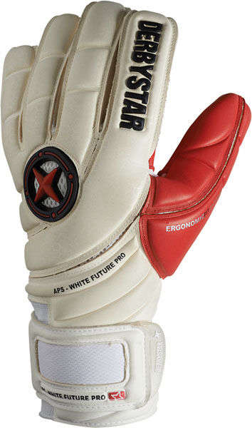 Derbystar Torwarthandschuh der spitzenklasse mit innennaht für bessere passform bei schmalen fingern. sehr gute haft- und fangeigenschaften bei jedem wetter. elastische bandage mit breitem rundum-klettverschluss aus latex. ergonomic fit system für optimalen sitz und nice one logo auf dem daumen.