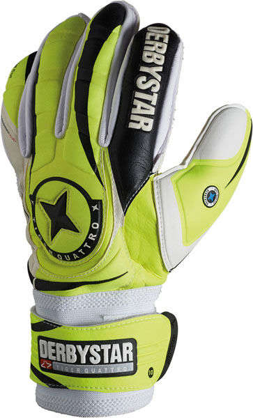 Derbystar Trainingshandschuh mit innennaht auf der oberhand für eine bessere passform bei schmalen fingern, trotzdem innen mit breiter haftschaumfläche. gute haft- und fangeigenschaften bei jedem wetter. die elastische bandage mit breitem klettverschluss aus eva-schaum und die optisize fit passform sorgen für angenehmen tragekomfort. mit dem auf dem daumen gedruckten nice one logo können sie einfach die leistung ihrer mitspieler honorieren.