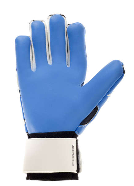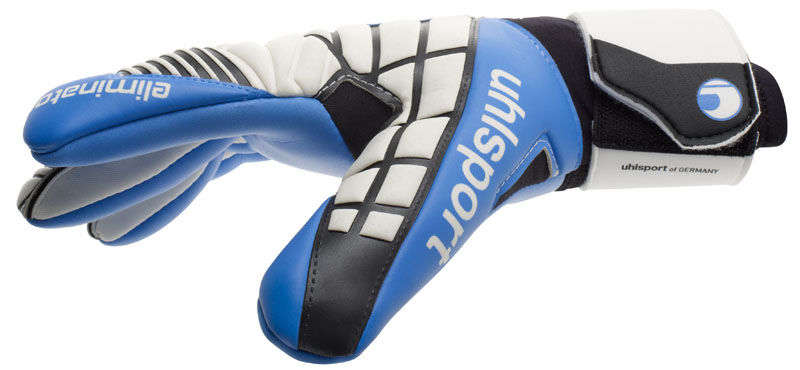 Uhlsport Handschoenen Eliminator zachte hn comping INNENHAND: patentierter SOFT Latex in energy blue RÜCKHAND: Latex Oberhand mit geprägter SCHOCKZONE SCHNITT: halb-negativ VERSCHLUSS: Halbbandage für hervorragende Passform und Stabilität