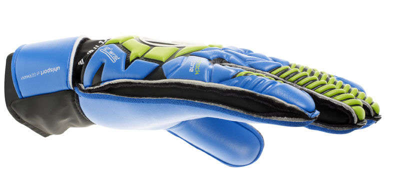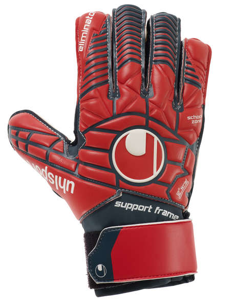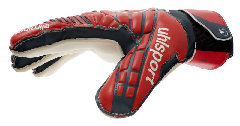 INNENHAND: SOFT Latex in energy blue RÜCKHAND: EVA SCHNITT: klassischer Schnitt sorgt für größtmögliche Fangfläche VERSCHLUSS: kurze Lasche mit Namensfeld und Einschlupf mit V-Einschnitt HANDSCHUHKÖRPER: weicher PU-Handschuhkörper mit Perforationen rund um die Finger für verbesserte Atmungsaktivität DESIGN: einzigartiges ELIMINATOR-Design