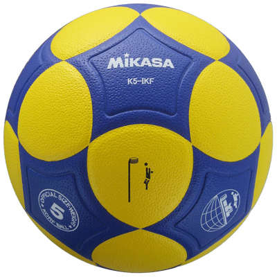 Die K5-IKF Korfball von Mikasa hat eine Grübchen-Haut für zusätzlichen Griff (Kunstleder) im neue gelb / blau IKF Farbe. Ist momentan den beliebtesten Korbball.